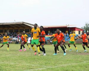 Akatsi Kickers despite leading kept pressing for more goals, but Aveyime defense will not have of that.