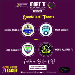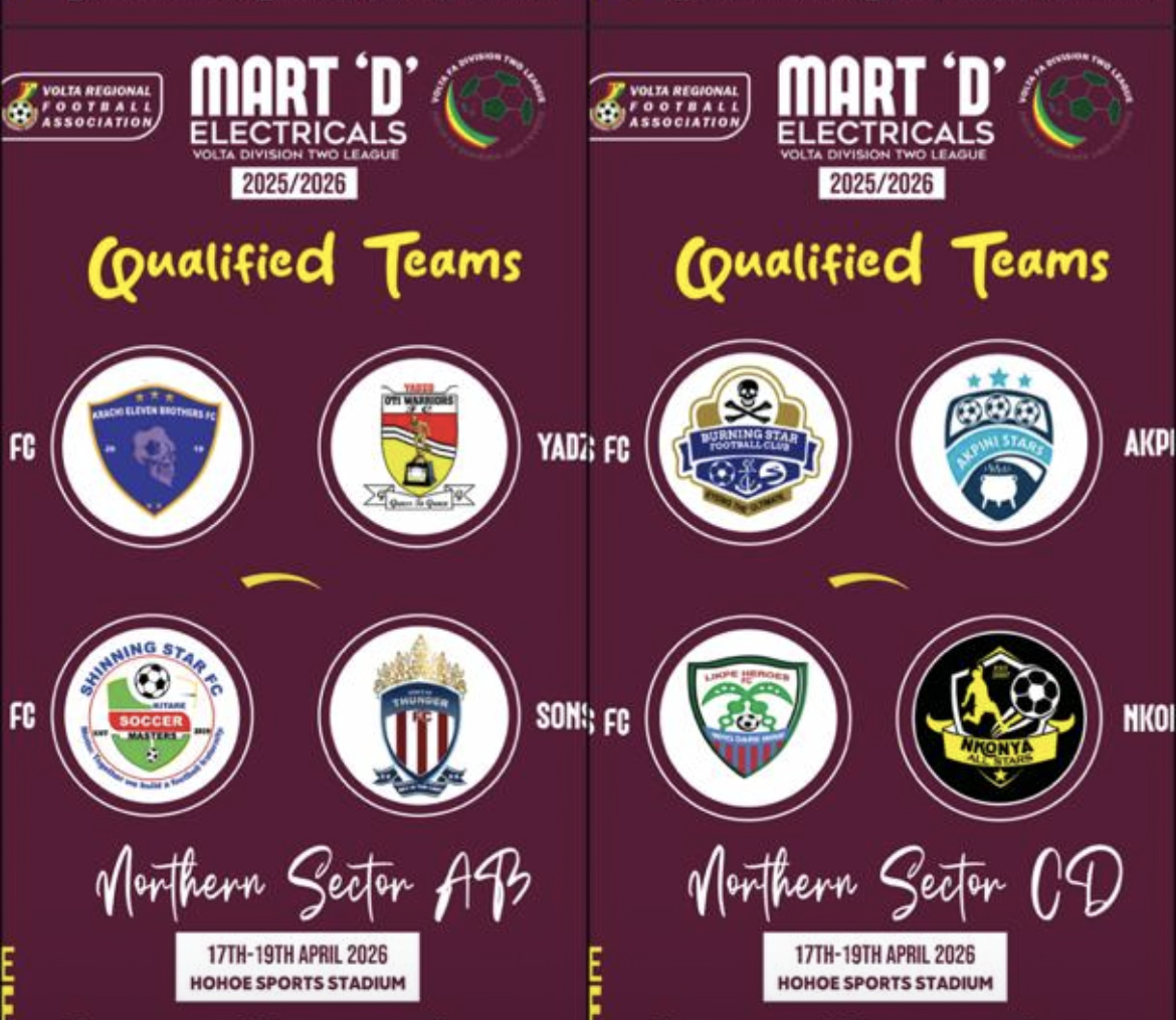 The qualified teams will converge at the Hohoe Sports Stadium from 17 to 19 April 2026, where they will compete for promotion places to the Volta Division Two Middle League.
