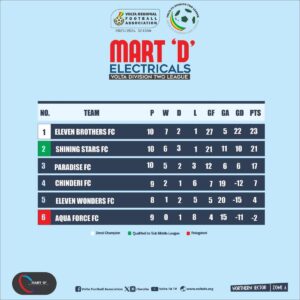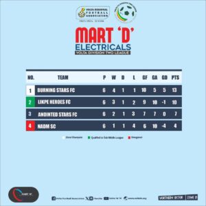 They are joined by Burning Stars FC and Akpini Stars FC, who also impressed by finishing with 13 points apiece after six matches.