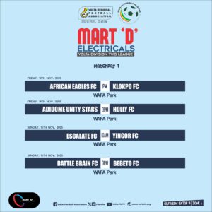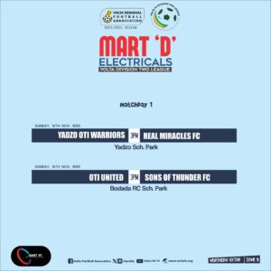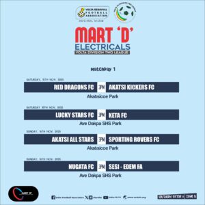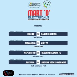 The Organizing Committee (OC) of the Volta Regional Football Association (VRFA) has announced the date, time, and venues for the opening matches of the 2025/26 Mart ‘D’ Division Two League season.