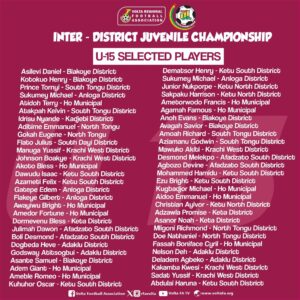 Most of these talented young players were selected from the various district teams during the just-ended Inter-District Juvenile Championship held at the Ho Sports Stadium and Youth Resource Center in Adaklu while others were selected during their respective district Juvenile leagues.