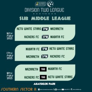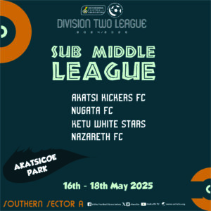 The Organizing Committee of the Volta Regional Football Association (VRFA) has announced that the Southern Sector A Division Two Sub-Middle League will take place from May 16 to May 18, 2025.